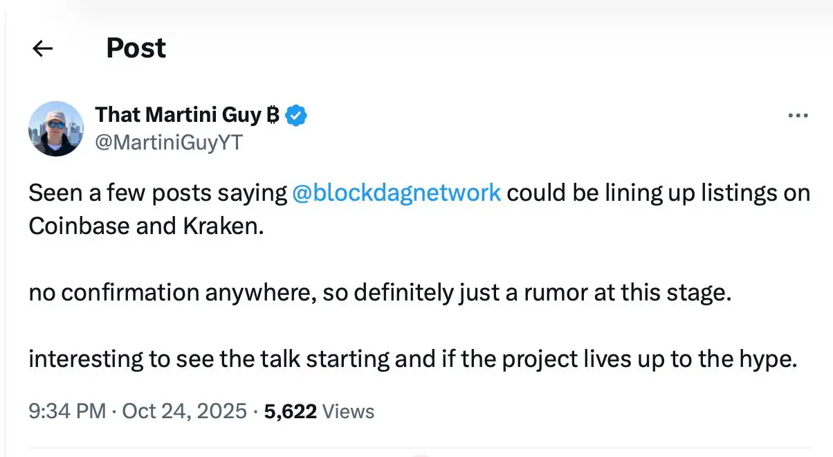 围绕这个话题的讨论BlockDAG 之后急转直下那个马提尼男最新发布的消息暗示该项目可能正在准备在 Coinbase 和 Kraken 上线。随后,一些截图和文件曝光,显示相关协议、流动性分配方案以及正在审核中的上线框架,进一步佐证了这一传闻。如果消息属实,BDAG 从预售阶段跃升至一级交易所,或将重新定义 2025 年预售成功的标准。