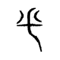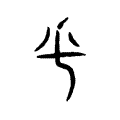 ,承自戰國文字之形,只是豎筆上端向右彎曲,而古文字原可左、右書寫。隸書、楷書之形,沿自篆文